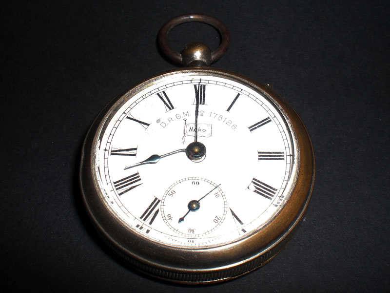 vintage (1920's) Pocket watch stylized for a tobacco container, produced by : ,,MOKO'' D.R.G.M. No 195169 - Bavaria. Diameter : 49 mm. Thickness : 19 mm. Any question, welcome. See my other items, thank you !!!